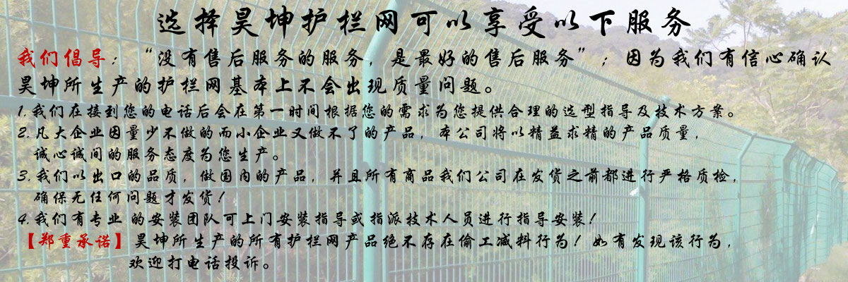 公司擁有先進(jìn)的生產(chǎn)設(shè)備,高標(biāo)準(zhǔn)的表面處理技術(shù),以及嚴(yán)格的質(zhì)量管理標(biāo)準(zhǔn)。我們堅(jiān)持以創(chuàng)造優(yōu)質(zhì)產(chǎn)品為理念,堅(jiān)持以產(chǎn)品品質(zhì)為先,始終執(zhí)著于產(chǎn)品創(chuàng)新,努力開拓國內(nèi)外市場。公司產(chǎn)品廣泛應(yīng)用于工業(yè)園區(qū)圍墻防護(hù),市政道路安全隔離,城市綠化工程等多方面領(lǐng)域,并與多家大中型建筑單位和部門建立了長期固定合作關(guān)系。
